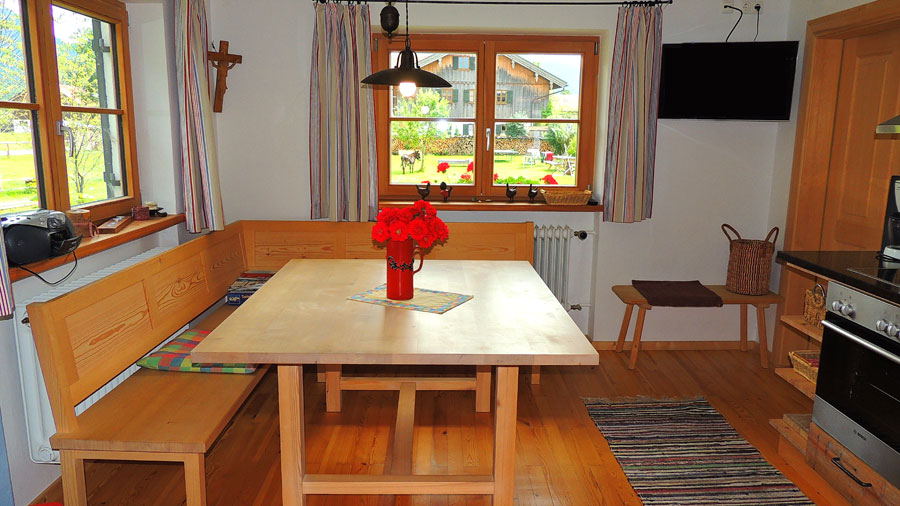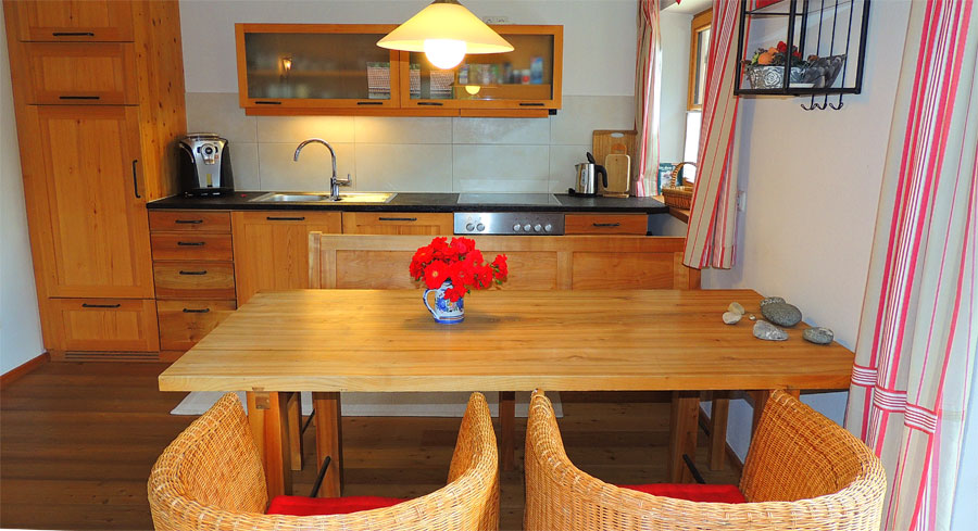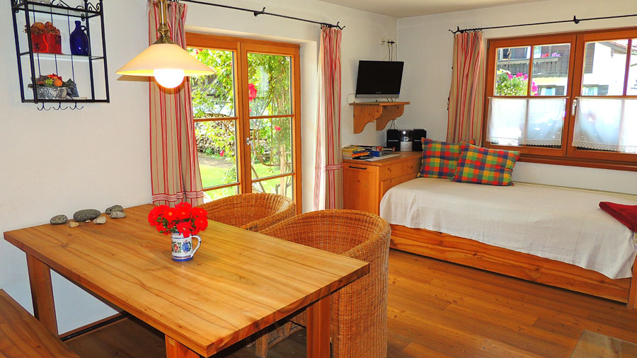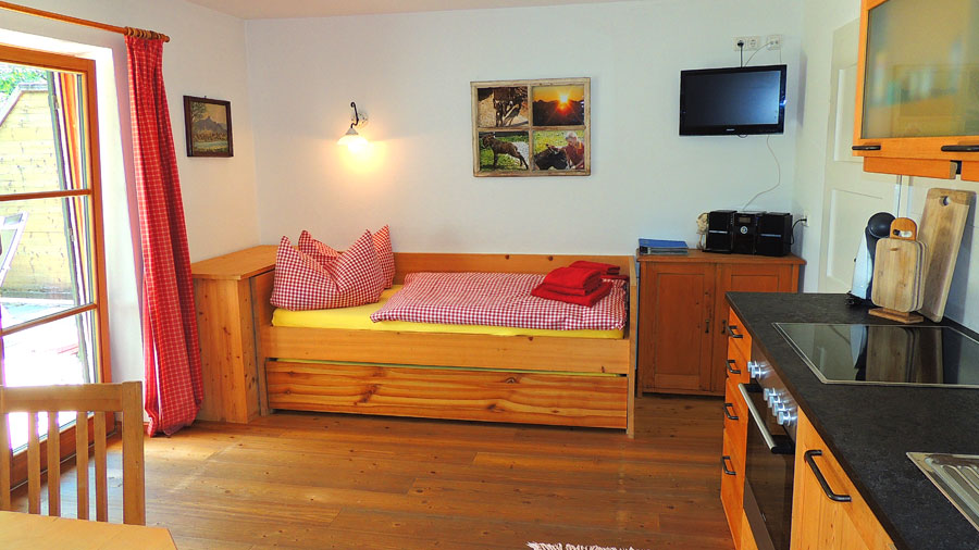 • Hochwertige Einrichtung mit Schreinermöblen, Allergikerbetten • großer Terrasse • Wohnküchküche mit Ceranfeld und Backofen, Spülmaschine • Kühlschrank mit Gefrierfach • Kaffeemaschine oder Kaffeevollautomat • Radio, TV, Sitzecke, G'flack • Barrierefreies Duschbad mit Föhn und Handtuch • Helles Schlafzimmer ohne Dachschräge, • Babybett kann bei Bedarf gestellt werden. • Großer Garten mit Liegewiese und Riesentrampolin • Sonnenliegen und brave Esel • 42 qm Wohnraum für bis zu 3 Personen